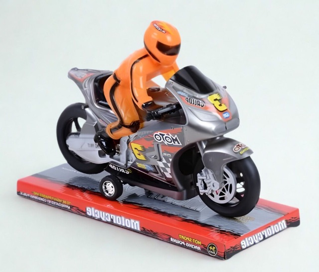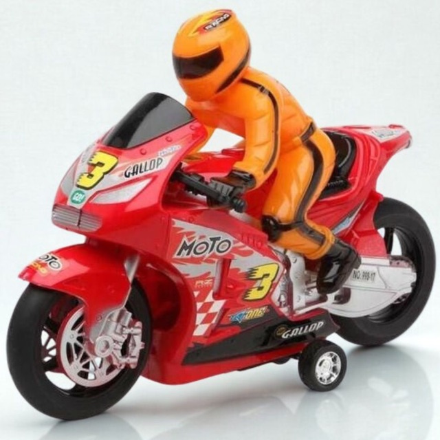 Copilul împinge motocicleta, creează trasee și simulează depășiri, dezvoltând coordonarea mână-ochi și motricitatea fină.