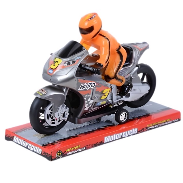 Această motocicletă de curse cu pilot este creată pentru copiii pasionați de viteză și competiție.