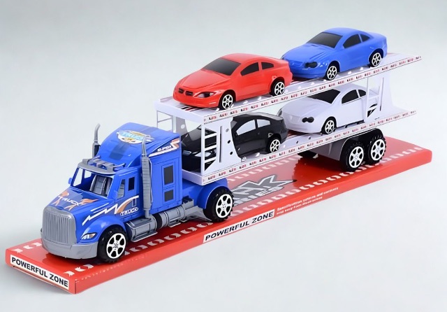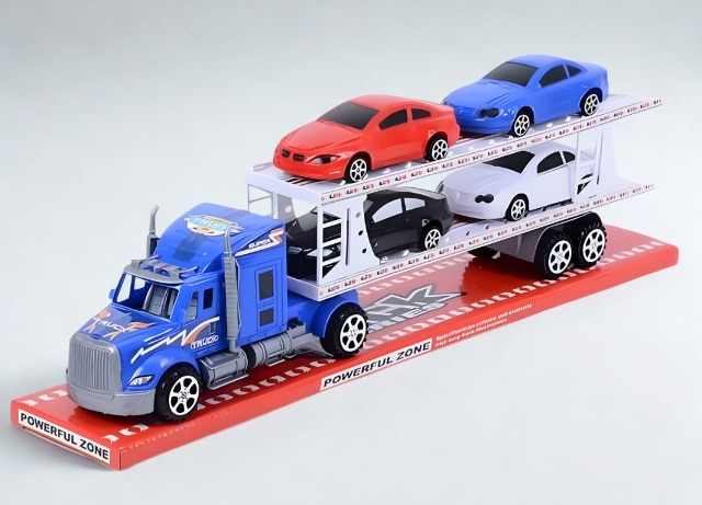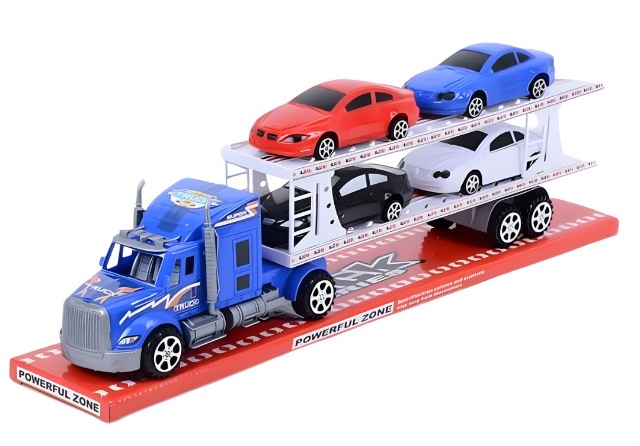Acest camion de transport auto cu platformă etajată permite copiilor să încarce și să transporte 4 mașinuțe, imitând situații reale din viața de zi cu zi.
