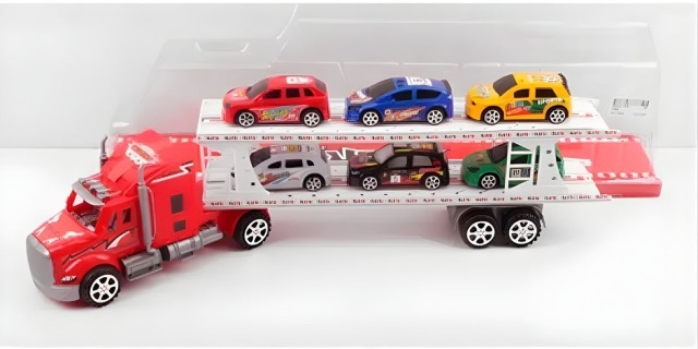 Acest camion de transport auto cu platformă etajată permite copiilor să încarce și să transporte simultan 6 mașinuțe colorate, stimulând jocul de rol și imaginația.