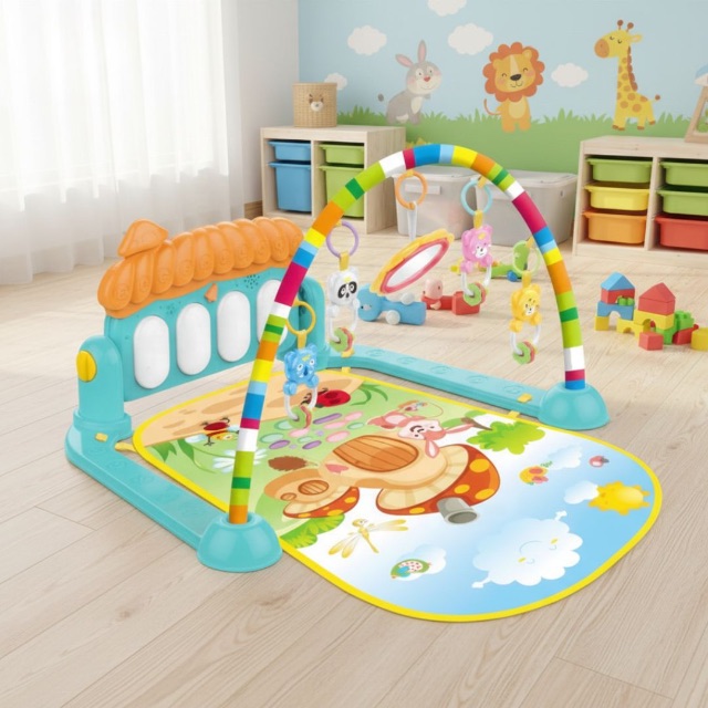 Pianul muzical reacționează la mișcările picioarelor și mâinilor, încurajând coordonarea și înțelegerea relației cauză–efect.