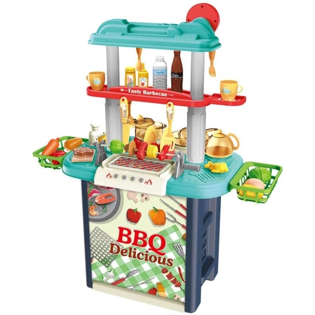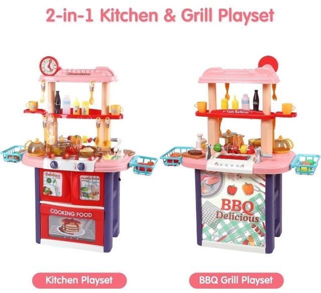 🔥 Bucătăria de jucărie 2 în 1 oferă copiilor experiența completă de gătit, combinând bucătăria clasică și grillul BBQ într-un singur set interactiv.