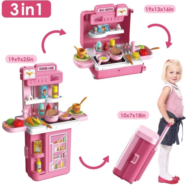 🎒 Design 3-în-1, ușor de transportat – se transformă din bucătărie completă în valiză portabilă, perfectă pentru joacă acasă sau în deplasare.