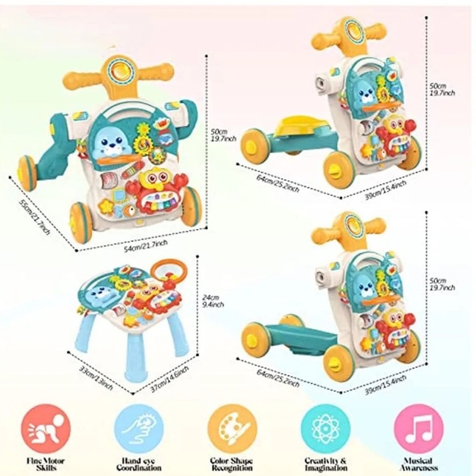 Premergătorul multifuncțional 4 în 1 crește odată cu copilul și susține fiecare etapă — de la joacă pe loc până la primii pași siguri.
