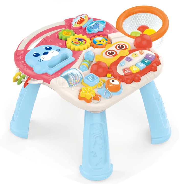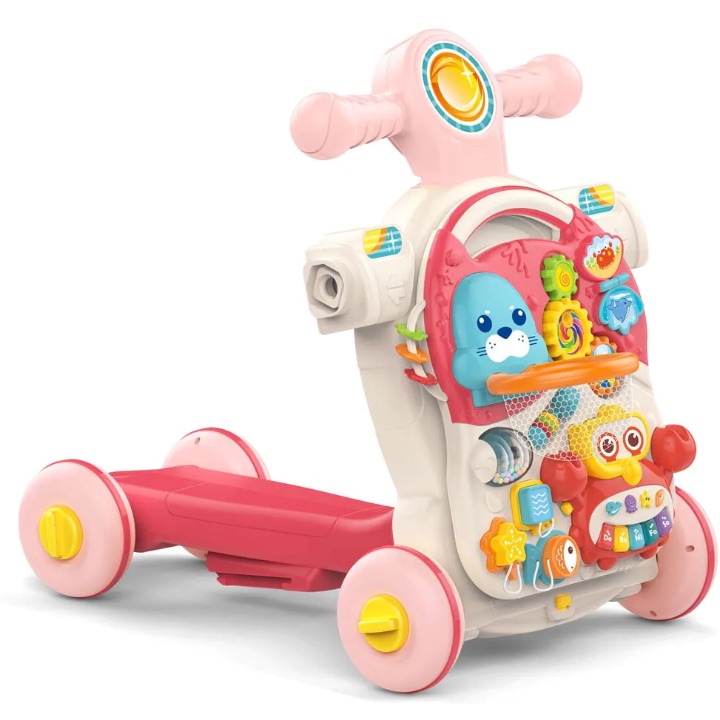 Este o jucărie educativă completă pentru dezvoltare timpurie, concepută pentru mers, joc senzorial, motricitate fină și descoperire zilnică într-un singur produs.
