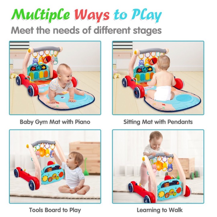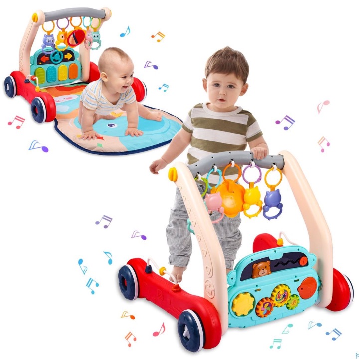 Acest premergător 2 în 1 pentru bebeluși combină joaca, explorarea și primii pași într-o singură jucărie interactivă, fiind ideal încă din primele luni de viață.