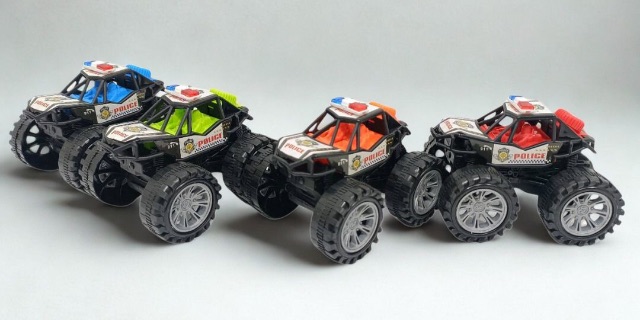 Mașinuța off-road poliție tip monster truck aduce aventuri pline de acțiune în lumea copiilor care iubesc mașinile de intervenție.