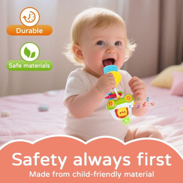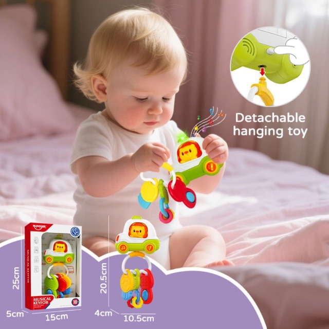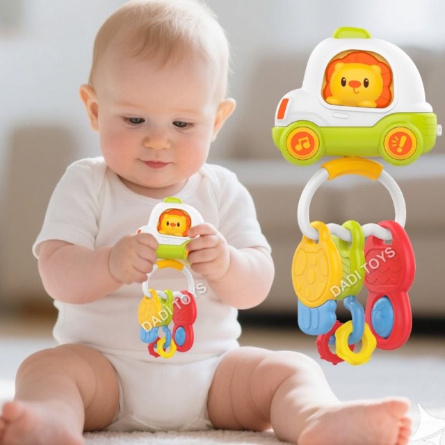 Zornăitoarea muzicală pentru bebeluși tip chei auto transformă joaca zilnică într-o experiență interactivă cu lumini, sunete și efecte muzicale captivante.